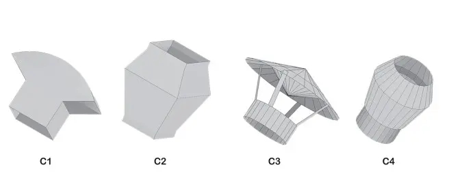 در انتهای برخی مسیرها، لازم است کانال اسپیرال به کانال چهارگوش یا دریچه هوا متصل شود. تبدیل گرد به چهارگوش این انتقال را بدون شوک ناگهانی به جریان هوا انجام میدهد و توزیع هوا را بهبود میبخشد.